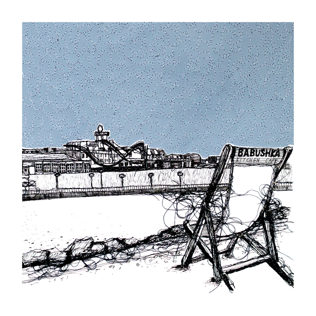 In collaboration with locally based Blue Ridge Craft company these Stitched Portrush Barrys wax hurricane lanterns feature a print of an original artwork by Frankie on Baird McNutt linen. The wax hurricane lanterns are handcrafted on the north coast of Ireland and this design recreates the view from Babushka café Portrush, across the West (Mill Strand) beach towards Barry's or as it's now known - Curry's Amusements. .